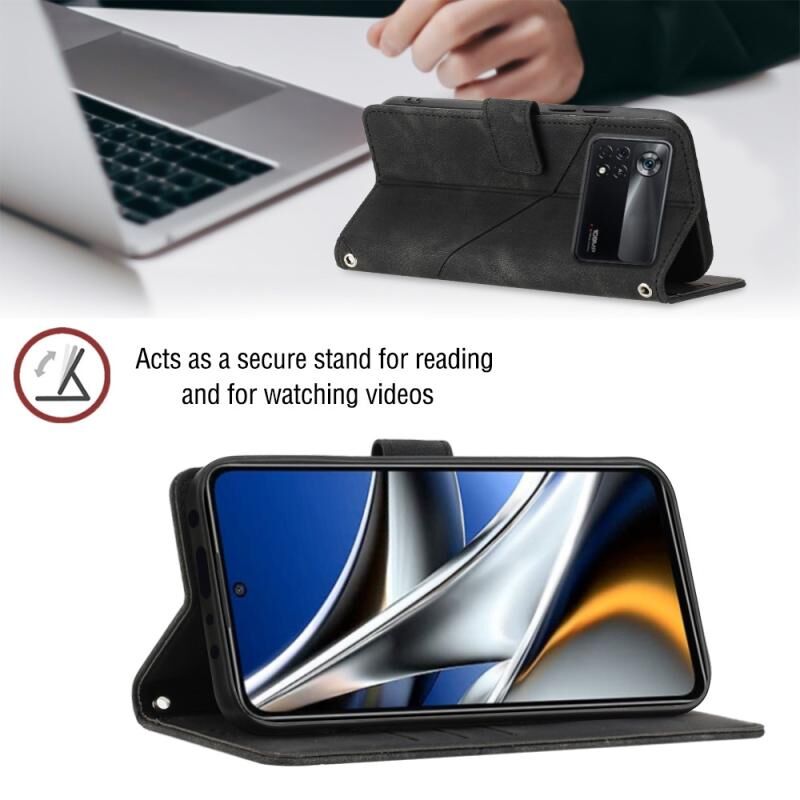 Για Xiaomi Poco X4 Pro 5G Skin-feel ανάγλυφη δερμάτινη θήκη τηλεφώνου (μαύρο)