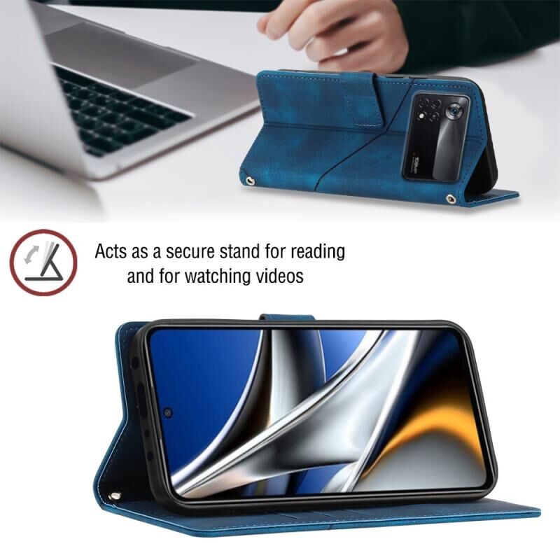 Για Xiaomi Poco X4 Pro 5G Skin-feel ανάγλυφη δερμάτινη θήκη τηλεφώνου (μπλε)