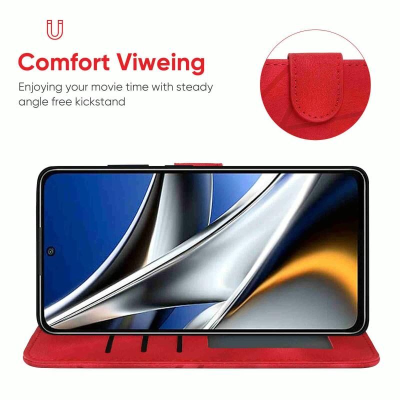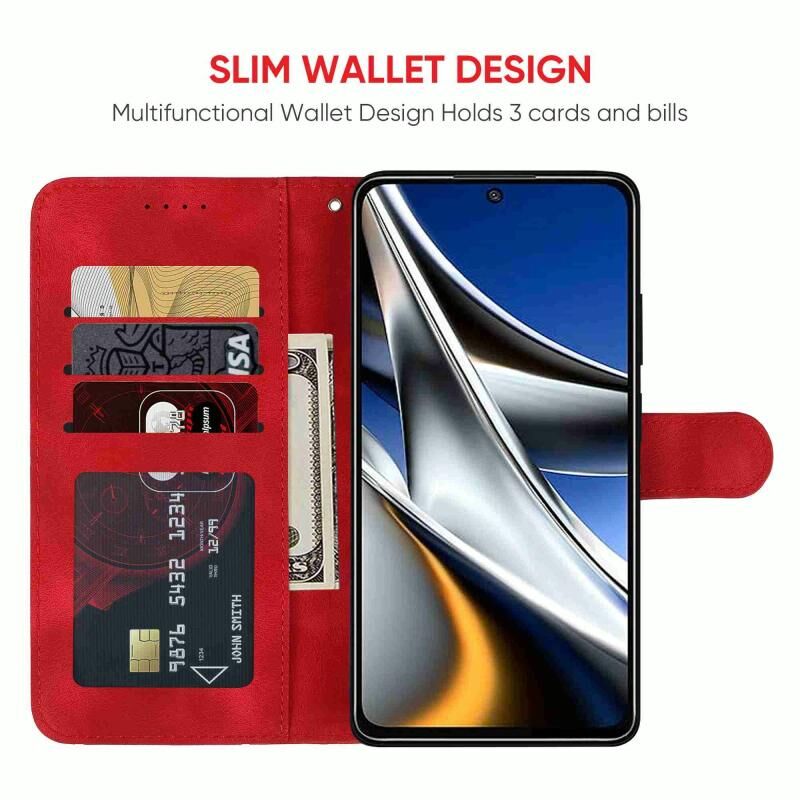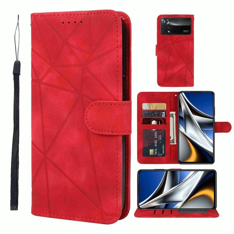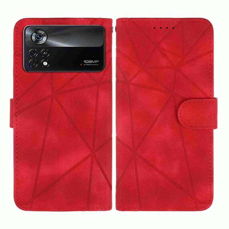 Για Xiaomi Poco X4 Pro 5G Skin Feel Geometric Lines Δερμάτινη θήκη τηλεφώνου (κόκκινο)