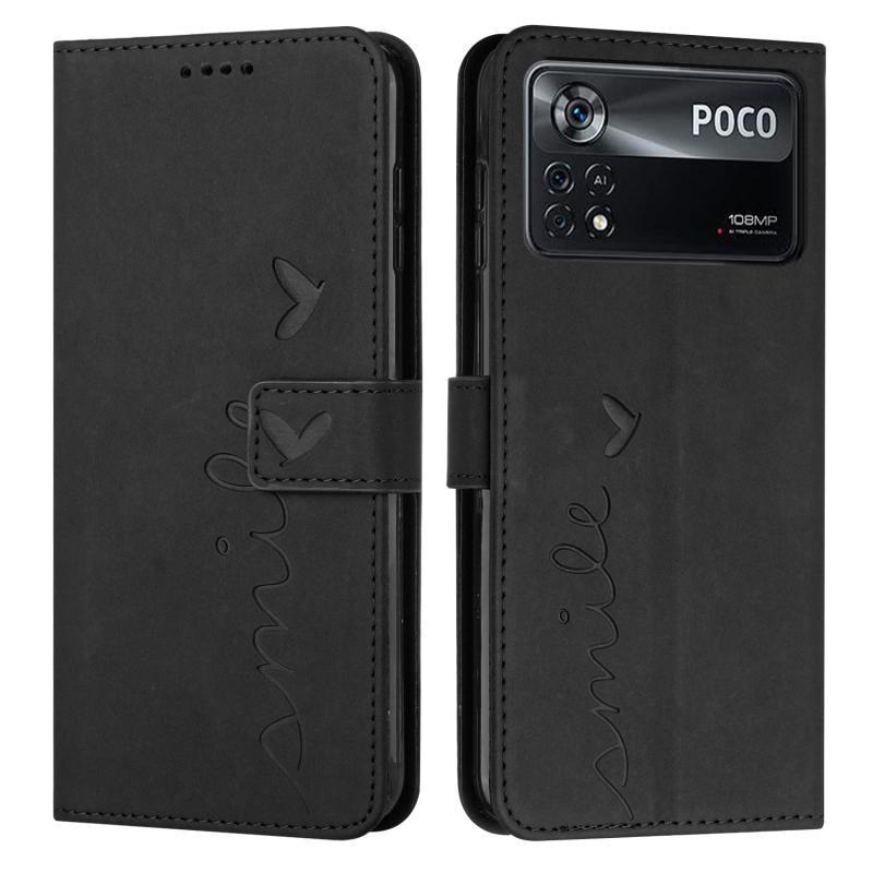 Θήκη δερμάτινη με σχέδιο καρδιάς για Xiaomi Poco X4 Pro 5G (Μαύρο)