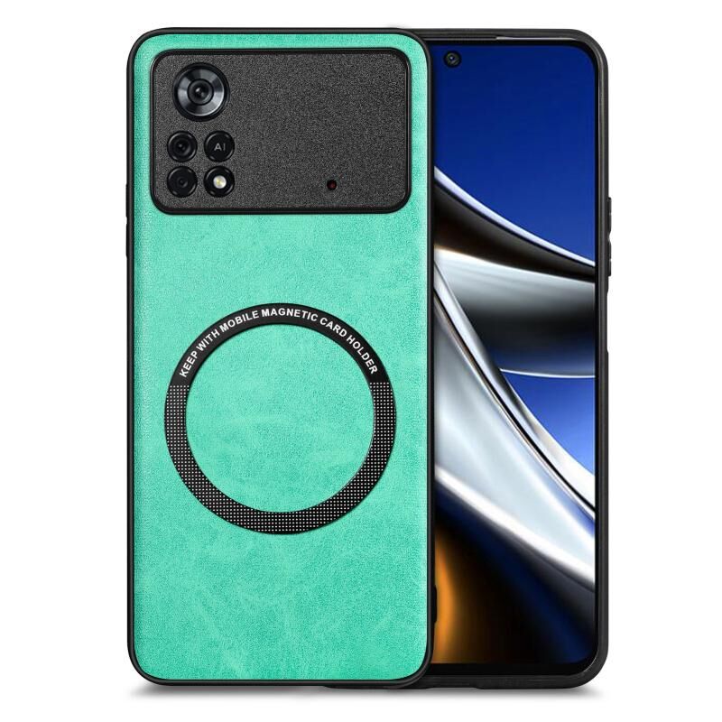 Θήκη τηλεφώνου από δέρμα με μονόχρωμο χρώμα για Xiaomi Poco X4 Pro 5G (πράσινο)