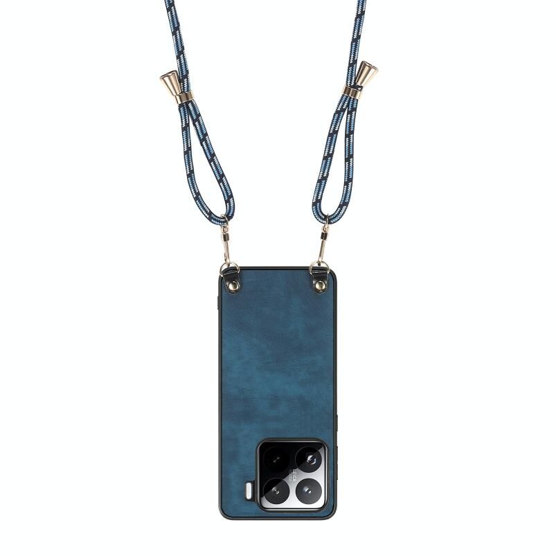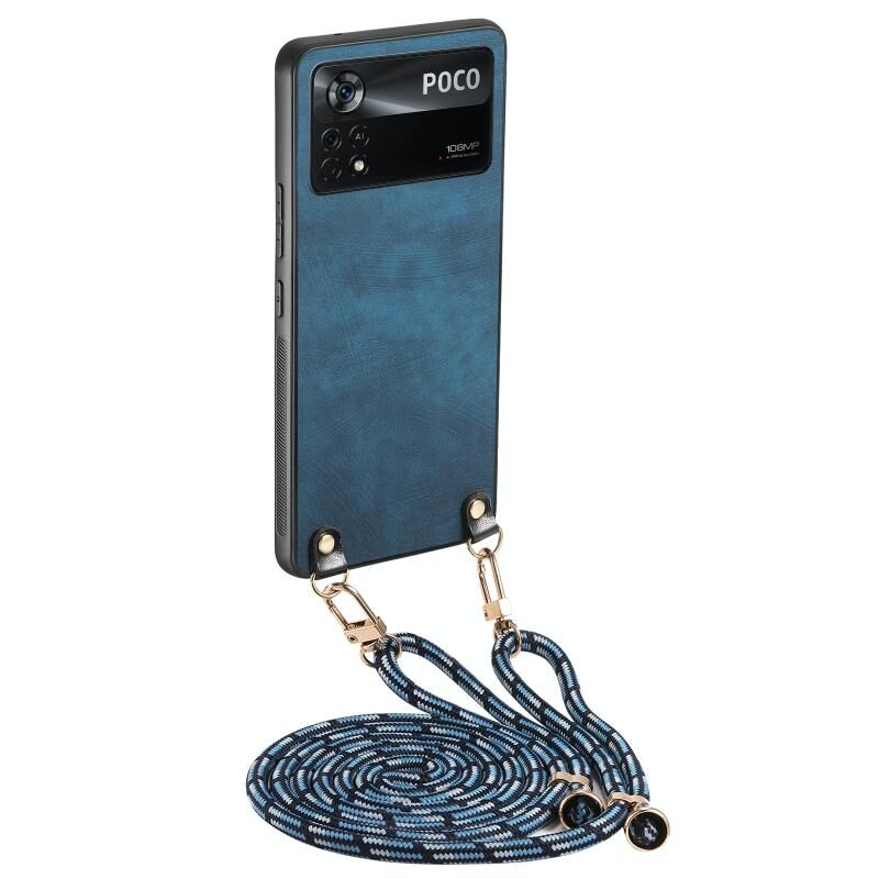 Για Xiaomi Poco X4 Pro 5G εκλεκτής ποιότητας δέρμα PC πίσω κάλυμμα τηλέφωνο υπόθεση με λουράκι σταυρού (μπλε)