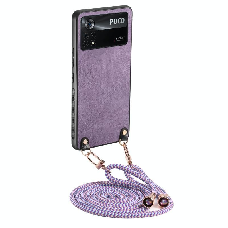 Για Xiaomi Poco X4 Pro 5G εκλεκτής ποιότητας δέρμα PC πίσω κάλυμμα τηλέφωνο υπόθεση με λουράκι σταυρού (μωβ)