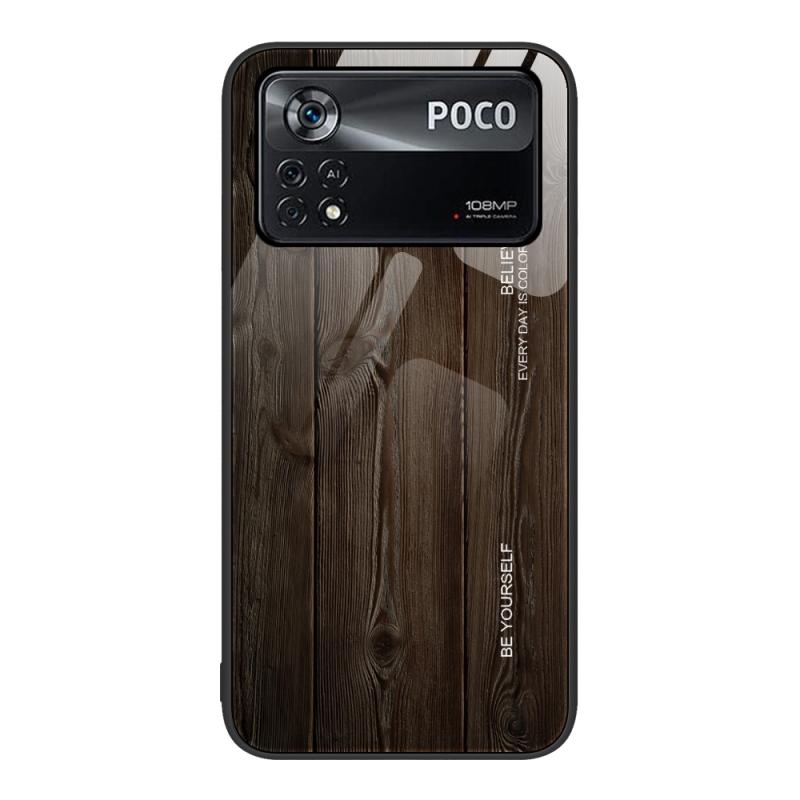 Θήκη Προστασίας από Γυαλί με Υφή Ξύλου για Xiaomi Poco X4 Pro 5G (Μαύρο)