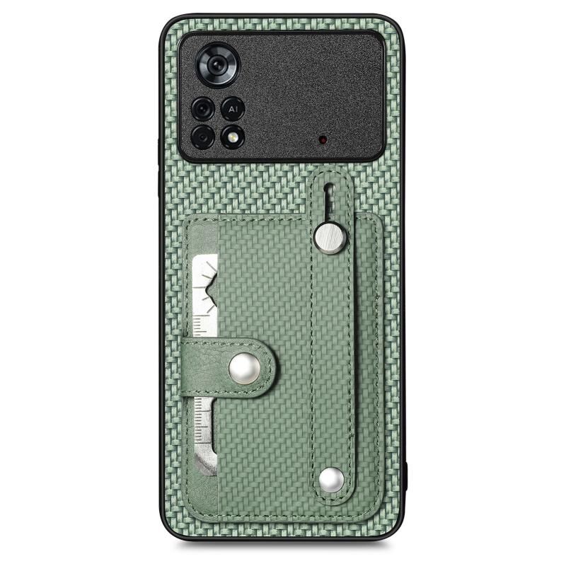 Για Xiaomi Poco X4 Pro 5G Wristband Kickstand κάρτα πορτοφόλι πίσω κάλυψη υπόθεση τηλεφώνου με εργαλείο μαχαίρι (πράσινο)