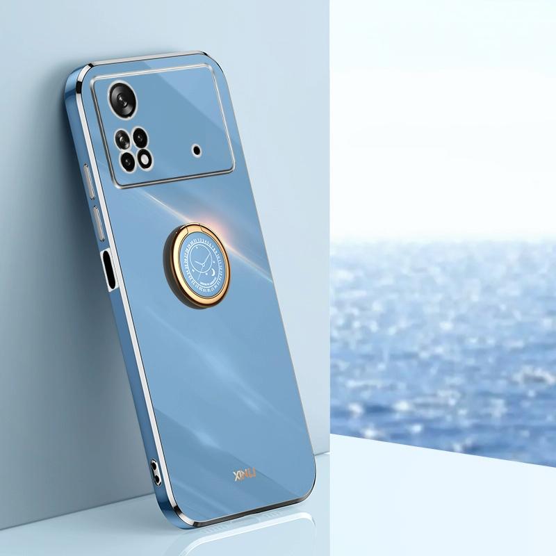 Θήκη κινητού τηλεφώνου XINLI για Xiaomi Poco X4 Pro 5G με ευθεία άκρη, 6D επιμετάλλωση TPU με δακτύλιο στήριξης (Μέντα Πράσινο) (Γαλάζιο του ουρανού)