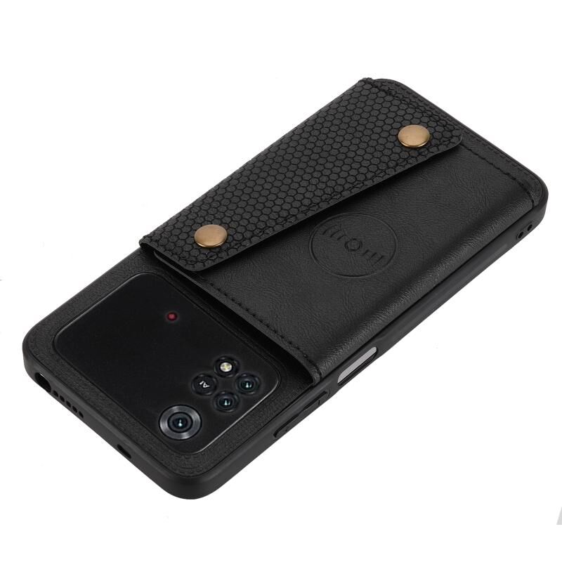 Για Xiaomi Poco X4 Pro Διπλή πόρπη PU + TPU Shockproof μαγνητική θήκη τηλεφώνου (Μαύρο)