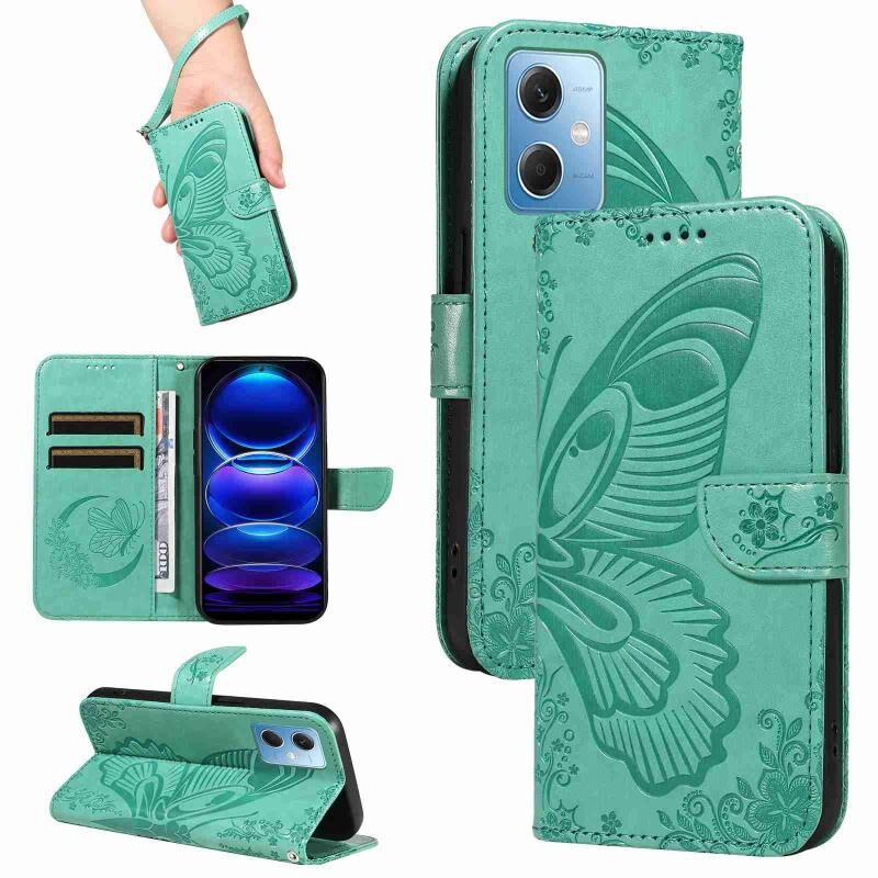 Θήκη τηλεφώνου από δέρμα με ανάγλυφο σχέδιο πεταλούδας Swallowtail για Xiaomi Poco X5 5G (Μωβ)