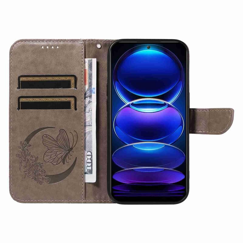 Θήκη τηλεφώνου από δέρμα με ανάγλυφο σχέδιο πεταλούδας Swallowtail για Xiaomi Poco X5 5G (Μωβ)