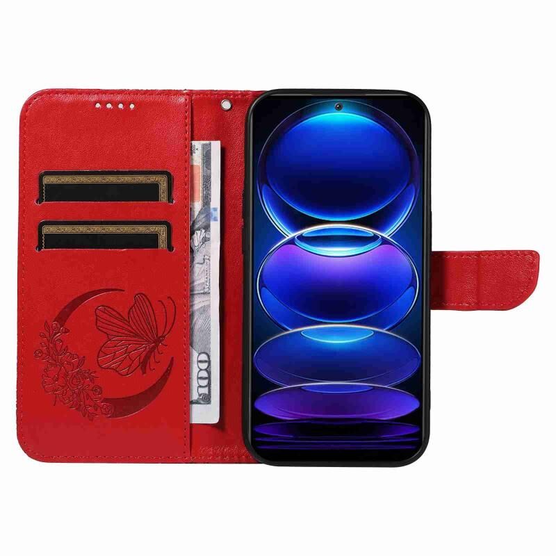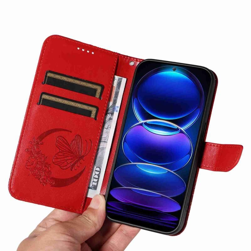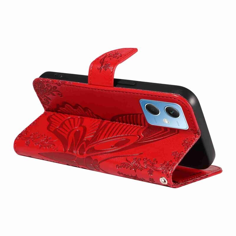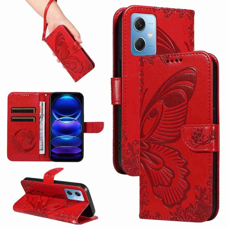 Θήκη τηλεφώνου από δέρμα με ανάγλυφο σχέδιο πεταλούδας Swallowtail για Xiaomi Poco X5 5G (Μπλε)