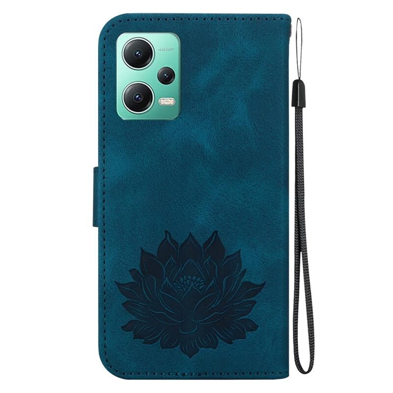 Για Xiaomi Poco X5 Lotus ανάγλυφη δερμάτινη θήκη τηλεφώνου (σκούρο μπλε)