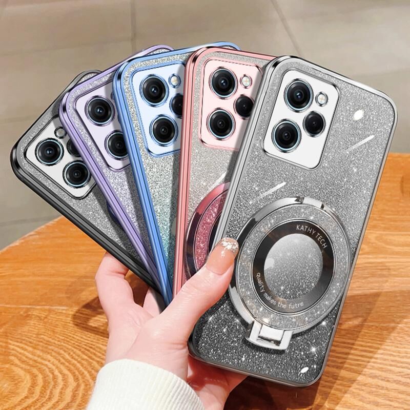 Για Xiaomi Poco X5 Επιμεταλλωμένο διαβάθμιση Glitter στρογγυλό κάτοχος TPU υπόθεση τηλεφώνου (ροζ)