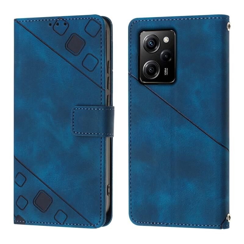 Για Xiaomi Poco X5 Pro 5G / Redmi Note 12 Pro Speed Skin-feel ανάγλυφη δερμάτινη θήκη τηλεφώνου (μπλε)