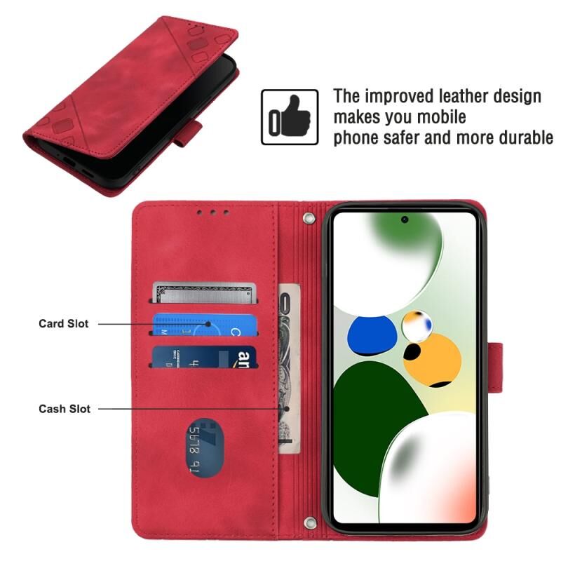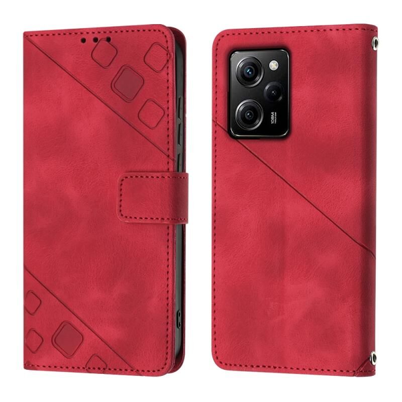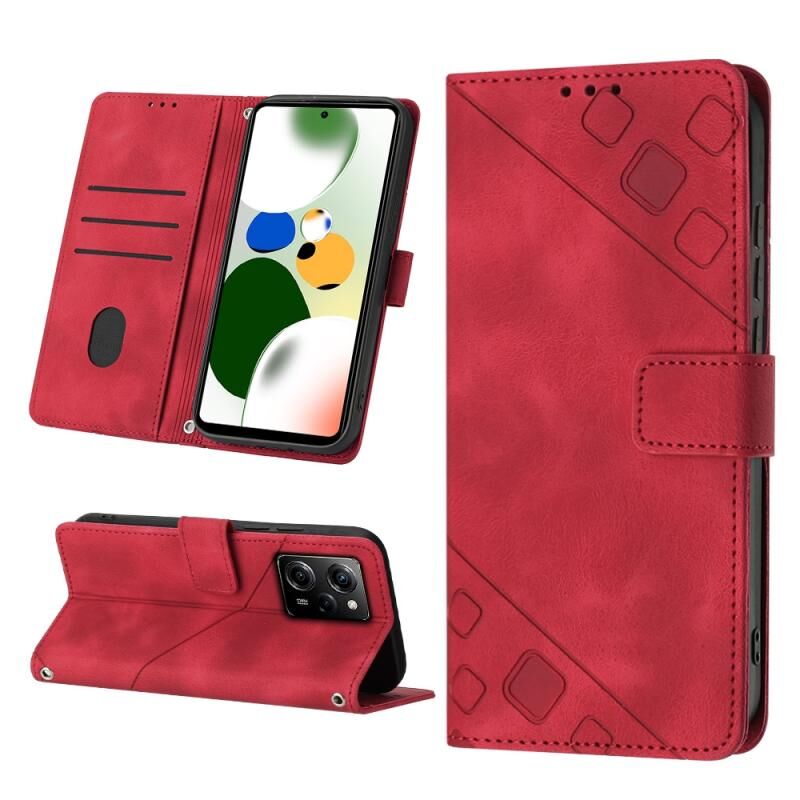 Για Xiaomi Poco X5 Pro 5G / Redmi Note 12 Pro Speed Skin-feel ανάγλυφη δερμάτινη θήκη τηλεφώνου (κόκκινο)
