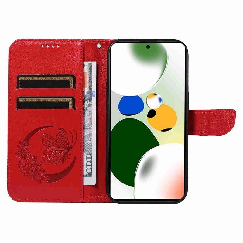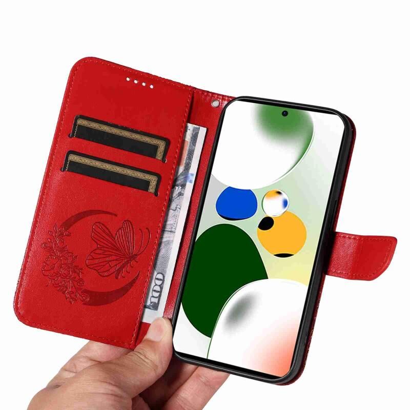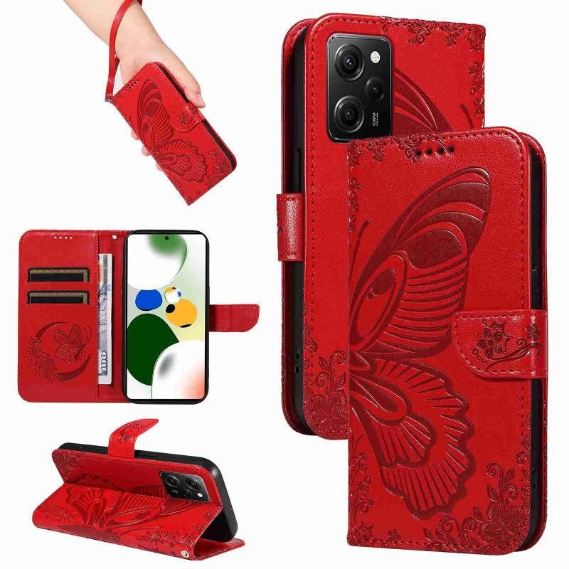 Θήκη τηλεφώνου από δέρμα με ανάγλυφο σχέδιο πεταλούδας Swallowtail για Xiaomi Poco X5 Pro 5G (Κόκκινο)