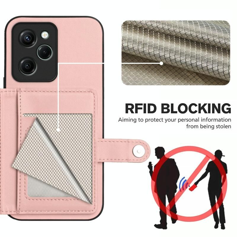 Για Xiaomi Poco X5 Pro Button Card Bag RFID Anti-theft τηλέφωνο υπόθεση (ροζ)