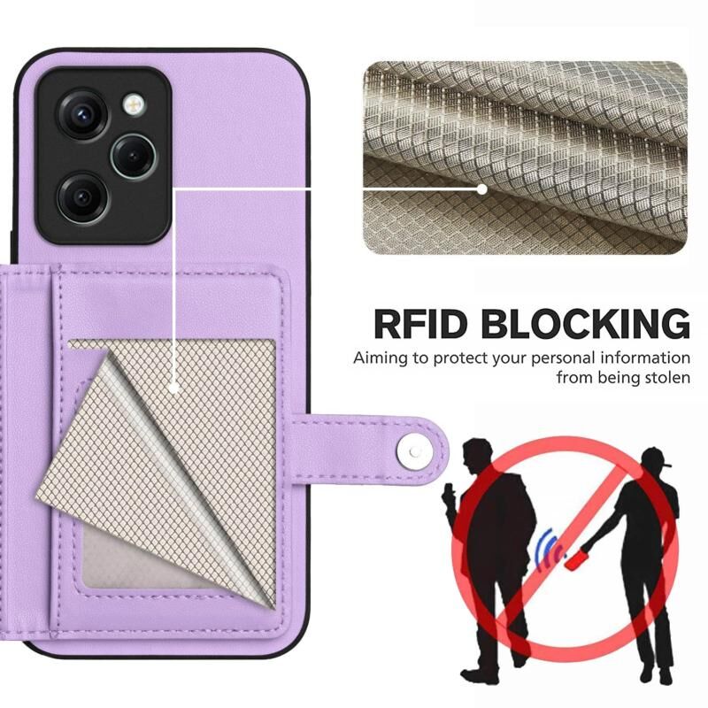 Για Xiaomi Poco X5 Pro Button Card Bag RFID Anti-theft τηλέφωνο υπόθεση (μωβ)