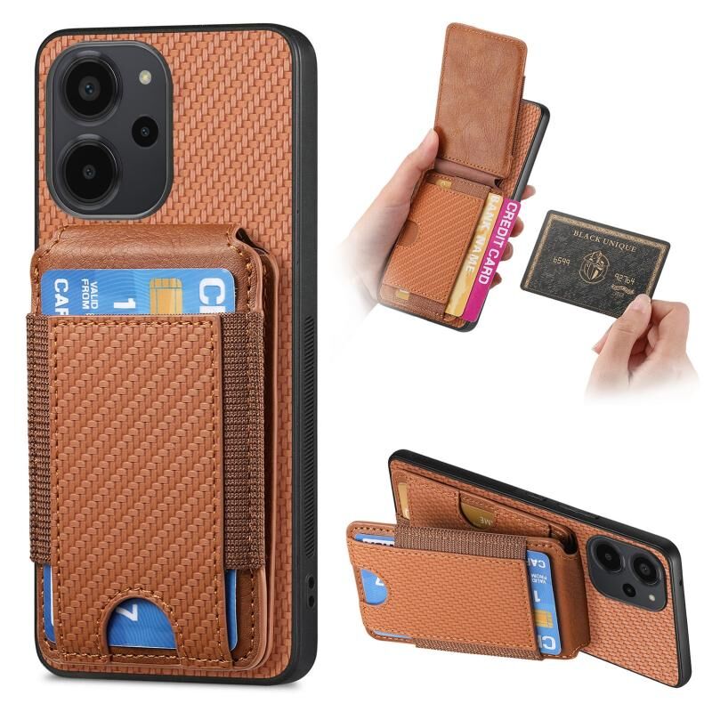 Για Xiaomi Poco X5 Pro Carbon Fiber Κάθετη Flip Wallet Stand υπόθεση τηλεφώνου (καφέ)