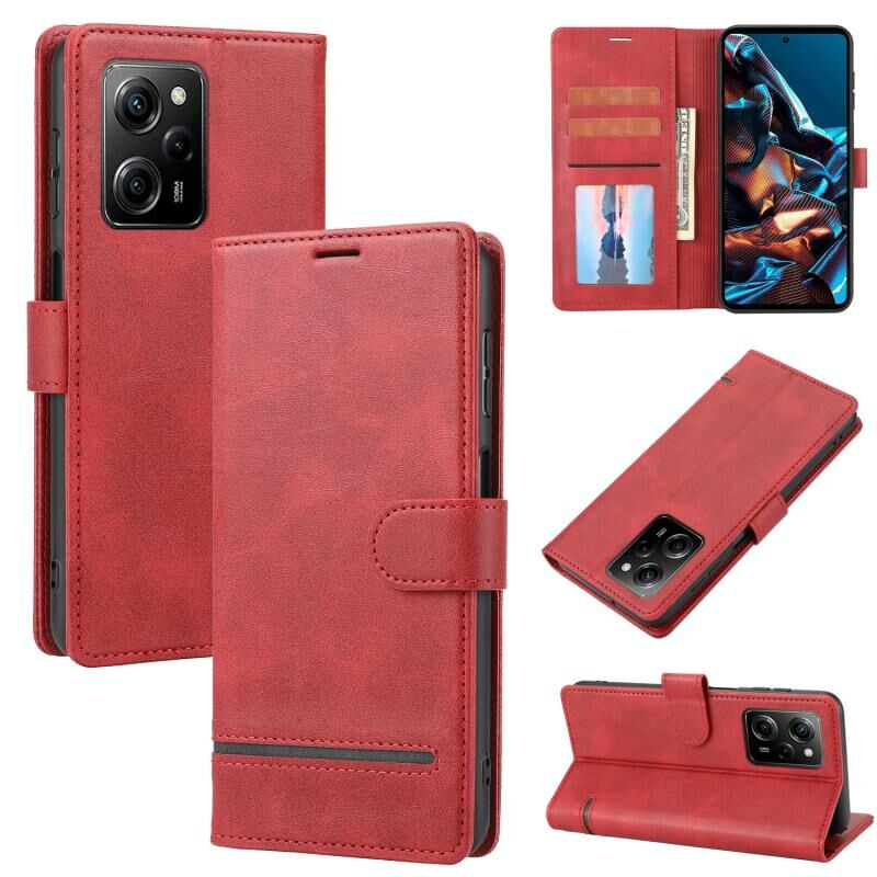 Για Xiaomi Poco X5 Pro Κλασική θήκη τηλεφώνου πορτοφόλι Flip δέρμα (κόκκινο)