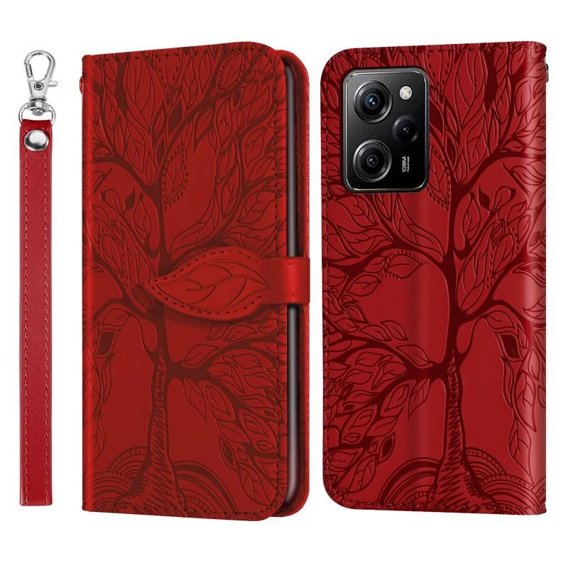 Για Xiaomi Poco X5 Pro Life Tree ανάγλυφο μοτίβο δερμάτινη θήκη τηλεφώνου (Κόκκινο)