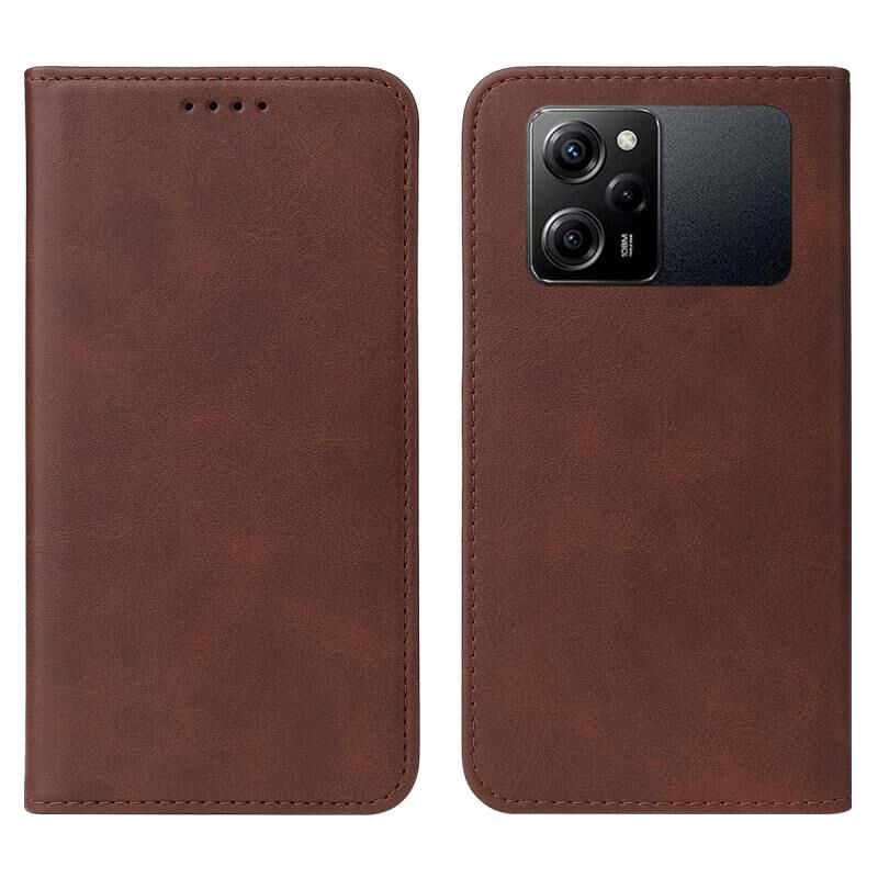 Για Xiaomi Poco X5 Pro Μαγνητικό κλείσιμο δερμάτινη θήκη τηλεφώνου (καφέ)