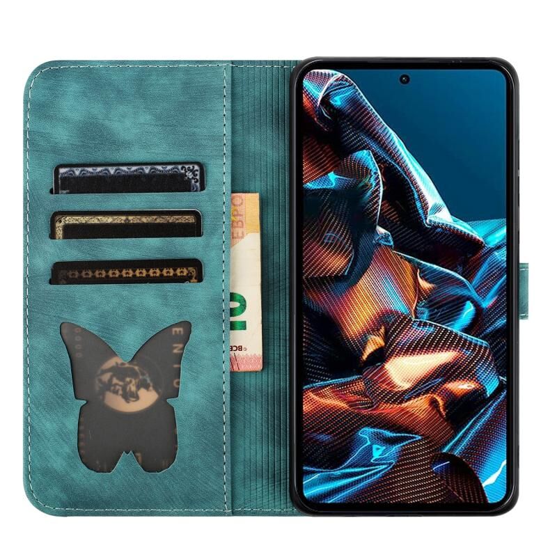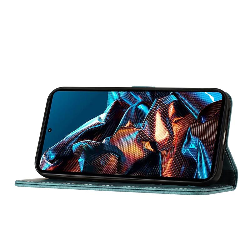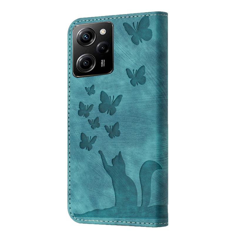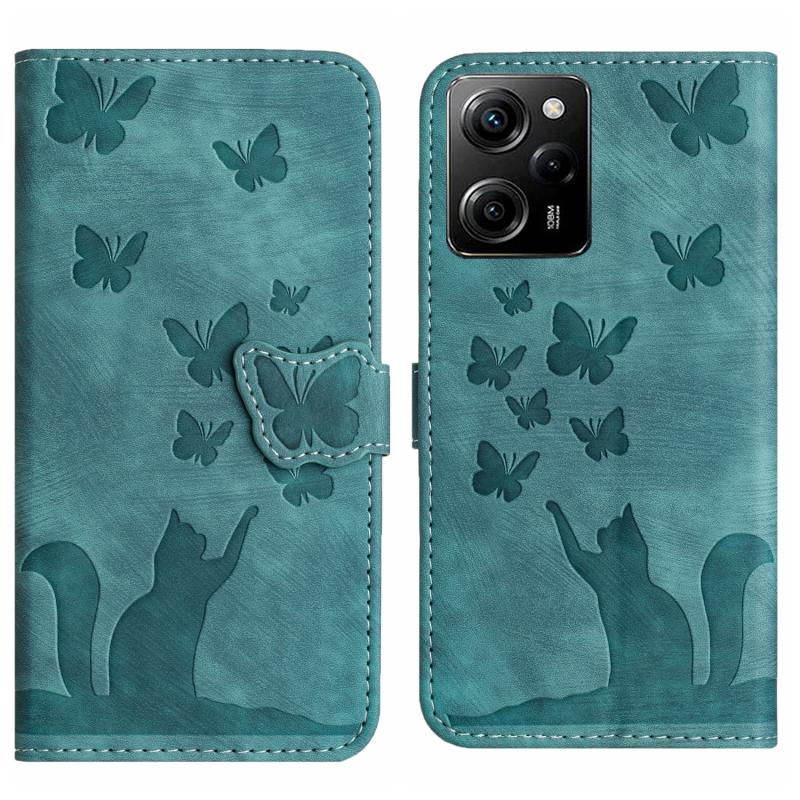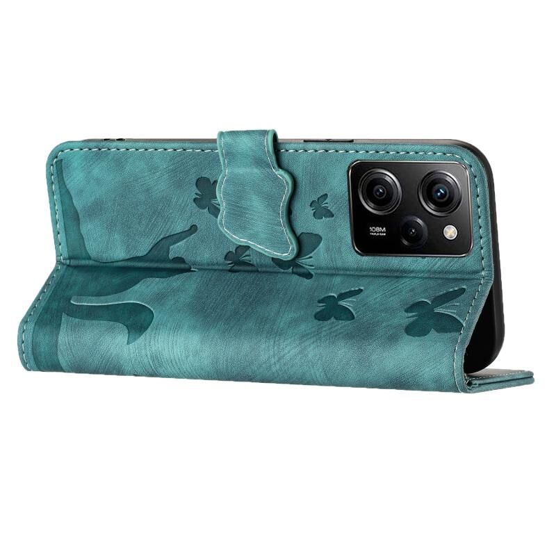 Θήκη δερμάτινη flip με ανάγλυφο σχέδιο γάτας για Xiaomi Poco X5 Pro / Redmi Note 12 Pro 5G (Wathet)