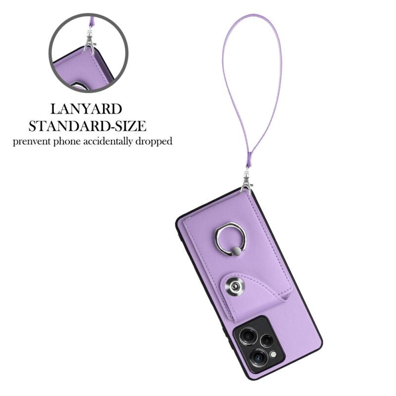Για Xiaomi Poco X5 Pro / Redmi Σημείωση 12 Pro Speed Organ Card Bag Ring κάτοχος PU τηλέφωνο υπόθεση με κορδόνι (μωβ)