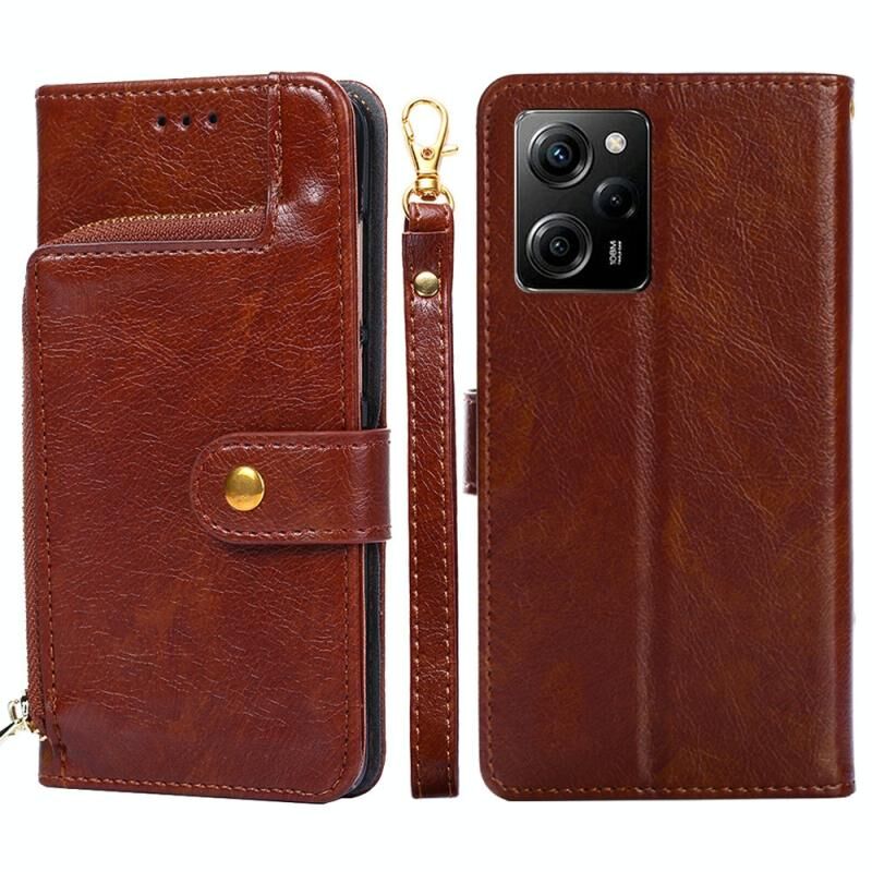 Για Xiaomi Poco X5 Pro / Redmi Note 12 Pro Speed φερμουάρ τσάντα δερμάτινη θήκη τηλεφώνου (καφέ)