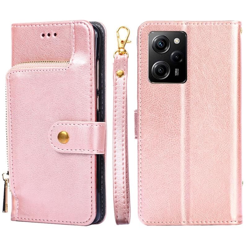 Για Xiaomi Poco X5 Pro / Redmi Note 12 Pro Speed φερμουάρ τσάντα δερμάτινη θήκη τηλεφώνου (Rose Gold)