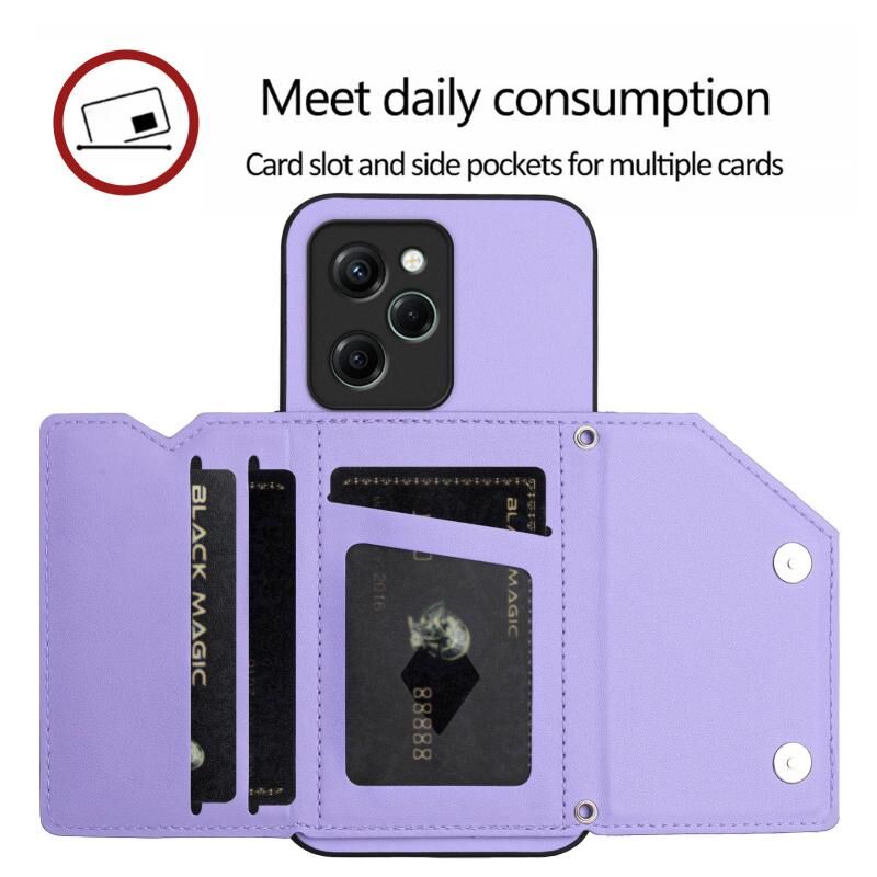 Για Xiaomi Poco X5 Pro Skin Feel Τέσσερις υποδοχές κάρτας υπόθεση τηλεφώνου με λουράκι καρπού (Μωβ)
