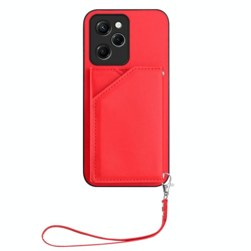 Για Xiaomi Poco X5 Pro Skin Feel Τέσσερις υποδοχές καρτών υπόθεση τηλεφώνου με λουράκι καρπού (Κόκκινο)