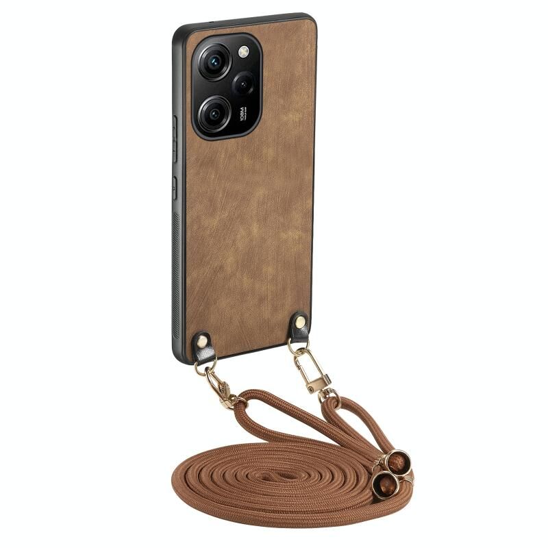 Για Xiaomi Poco X5 Pro εκλεκτής ποιότητας δέρμα PC πίσω κάλυμμα τηλέφωνο υπόθεση με λουράκι σταυρού (Καφέ)