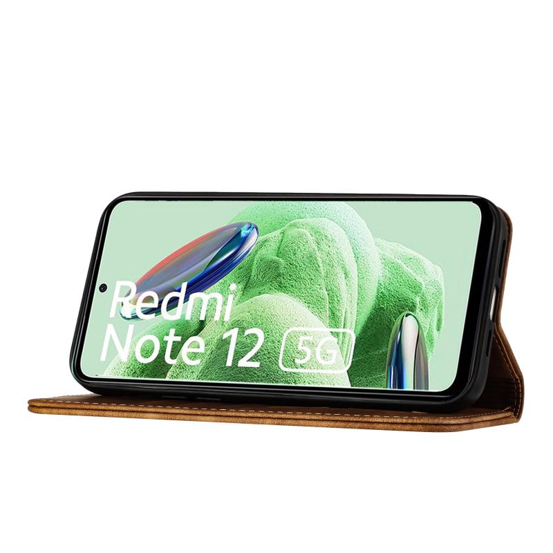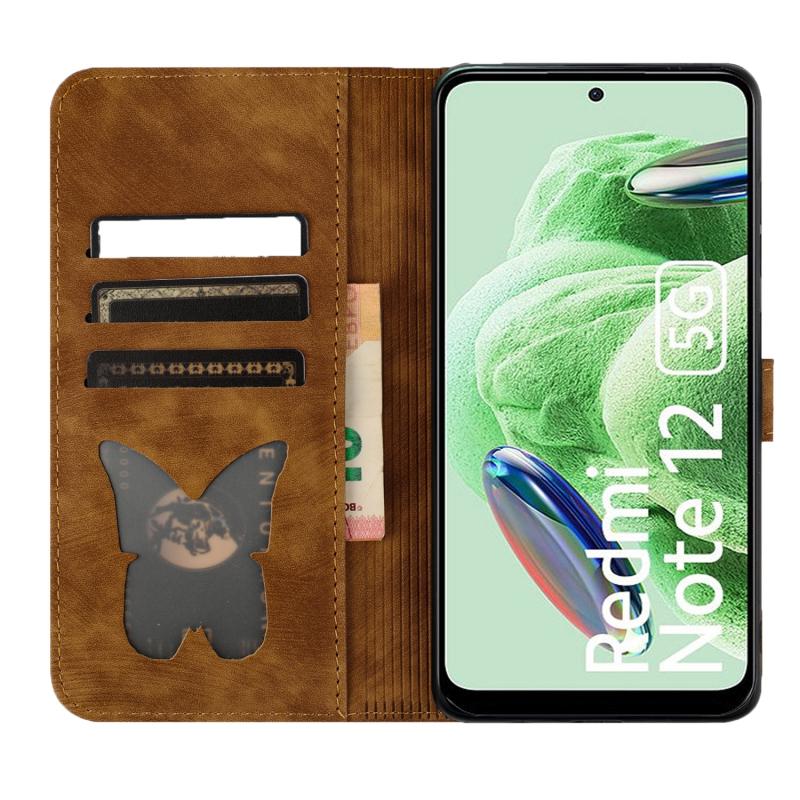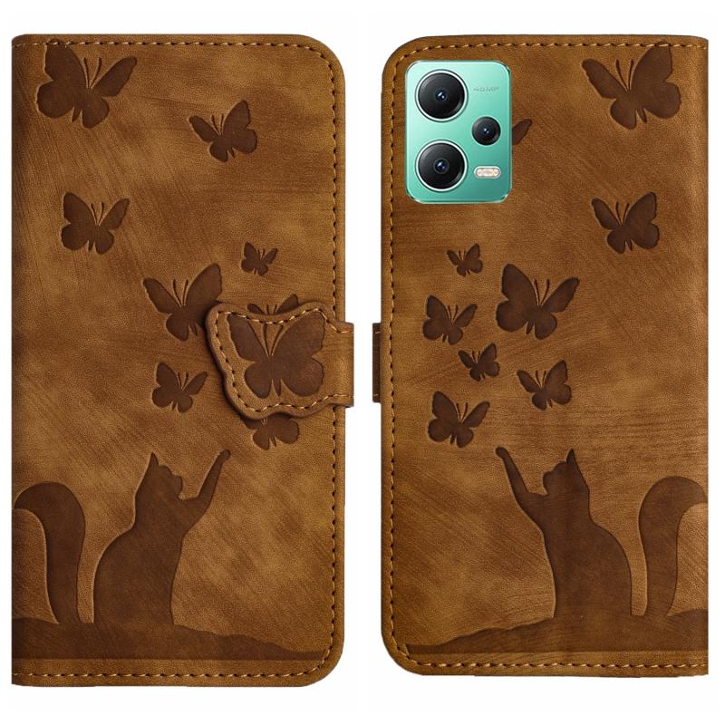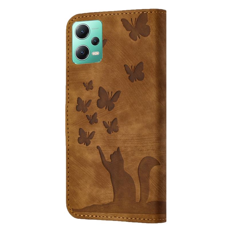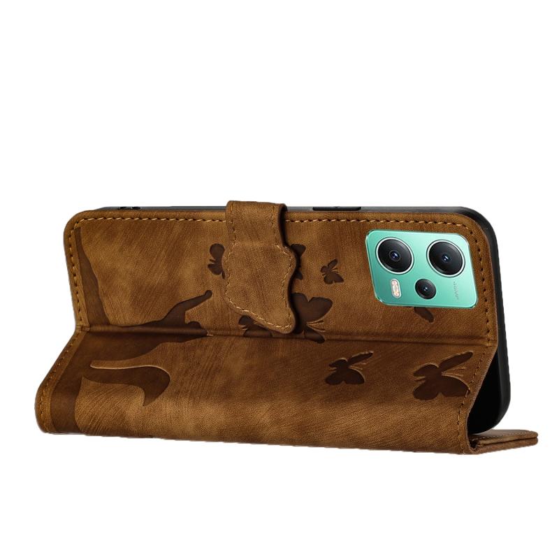 Για Xiaomi Poco X5 / Redmi Note 12 5G Θήκη Δερμάτινη με ανάγλυφο σχέδιο γάτας - Flip (Καφέ)