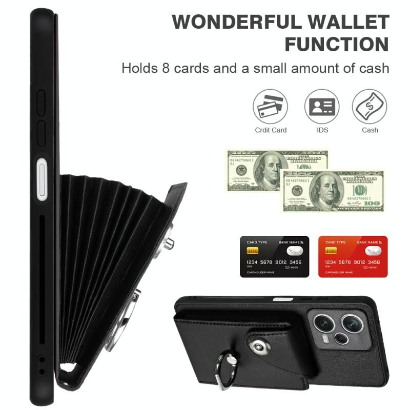 Για Xiaomi Poco X5 / Redmi Σημείωση 12 5G Παγκόσμια Οργανική κάρτα τσάντα δαχτυλίδι κάτοχος PU τηλέφωνο υπόθεση με κορδόνι (Μαύρο)