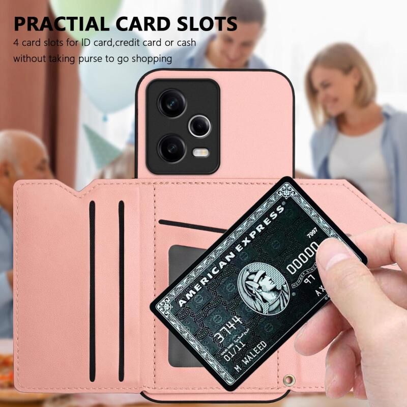 Για Xiaomi Poco X5 Skin Feel Τέσσερις υποδοχές καρτών υπόθεση τηλεφώνου με λουράκι καρπού (ροζ)