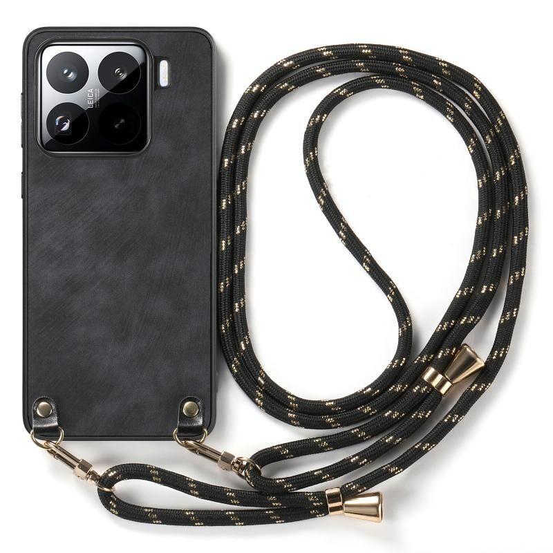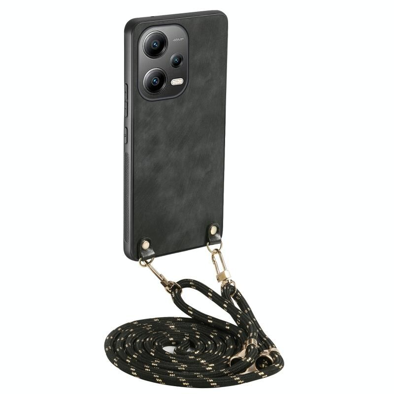 Για Xiaomi Poco X5 εκλεκτής ποιότητας δέρμα PC πίσω κάλυψη υπόθεση τηλεφώνου με λουράκι σταυρού (μαύρο)