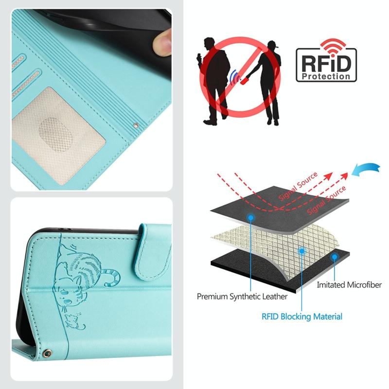 Για Xiaomi POCO X6 5G Global Θήκη PU με σχέδιο γάτας και λουρί καρπού (Πράσινο Μέντα)