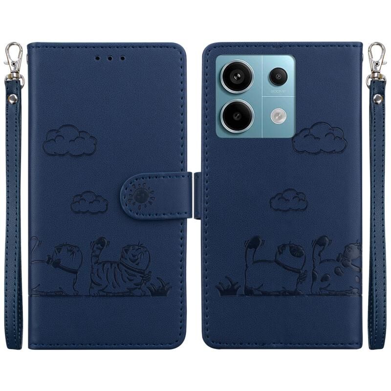 Θήκη τηλεφώνου από δέρμα με χαριτωμένες γάτες RFID για Xiaomi Poco X6 5G Global (Μωβ)