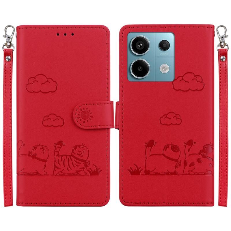 Θήκη τηλεφώνου από δέρμα με χαριτωμένες γάτες RFID για Xiaomi Poco X6 5G Global (Μωβ)