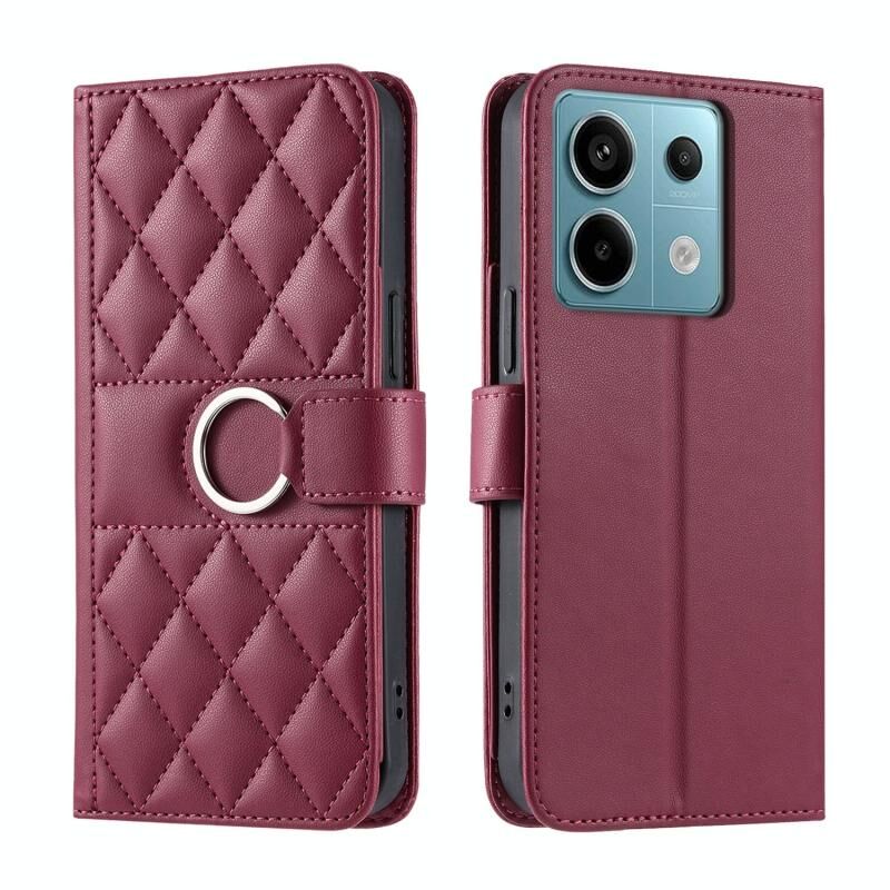 Για Xiaomi Poco X6 5G Παγκόσμια δαχτυλίδι πόρπη Rhombic δέρμα τηλέφωνο υπόθεση (Κόκκινο)
