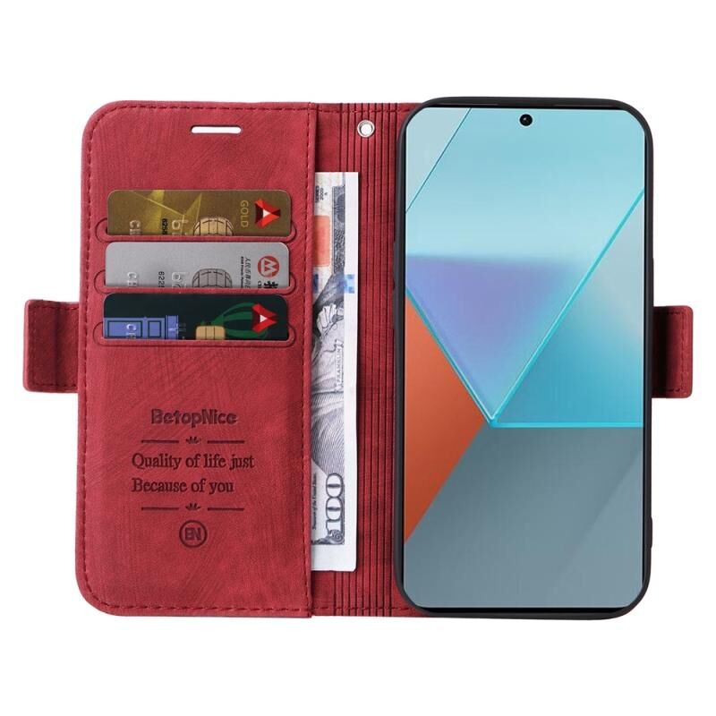 Για Xiaomi Poco X6 5G / Redmi Note 13 Pro 5G Παγκόσμια υπόθεση τηλεφώνου BETOPNICE διπλής όψης δερμάτινη θήκη με αγκράφα (κόκκινο) (BETOPNICE)