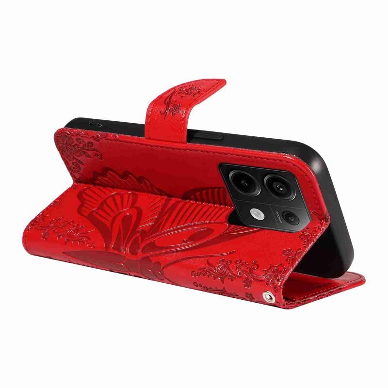 Θήκη τηλεφώνου από δέρμα με ανάγλυφο σχέδιο πεταλούδας Swallowtail για Xiaomi Poco X6 5G (Μπλε)