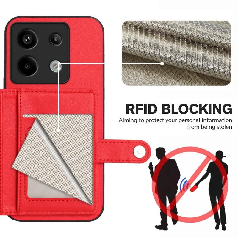 Για Xiaomi Poco X6 Button Card Bag RFID Anti-theft τηλέφωνο υπόθεση (Κόκκινο)