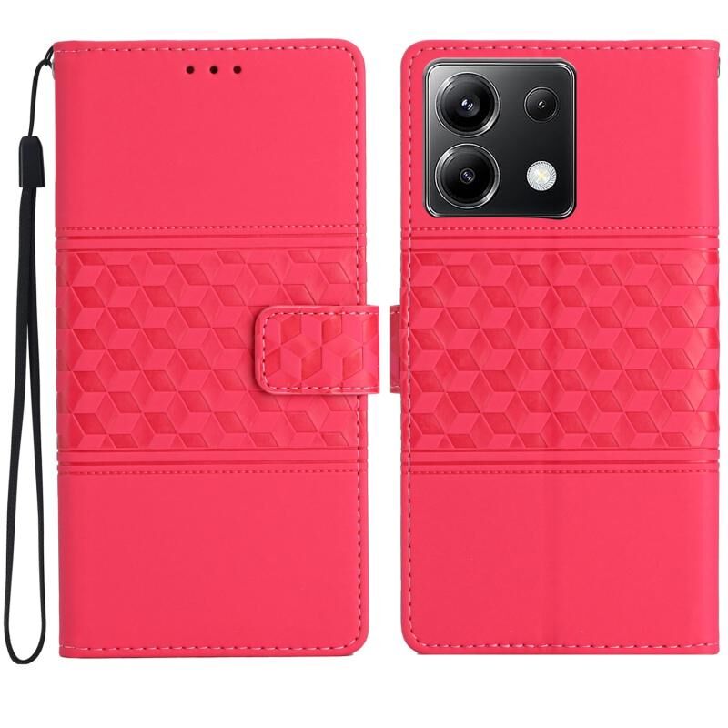 Για Xiaomi Poco X6 Diamond ανάγλυφο δέρμα αίσθηση δέρμα τηλέφωνο υπόθεση (κόκκινο)