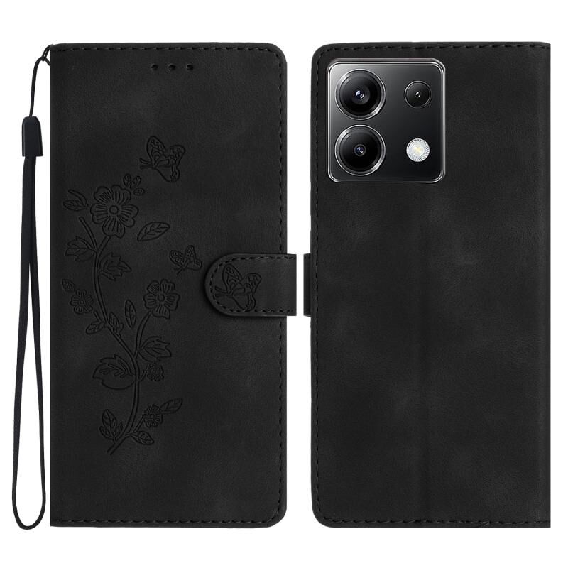 Για Xiaomi Poco X6 λουλούδι πεταλούδα ανάγλυφο μοτίβο δερμάτινη θήκη τηλεφώνου (μαύρο)