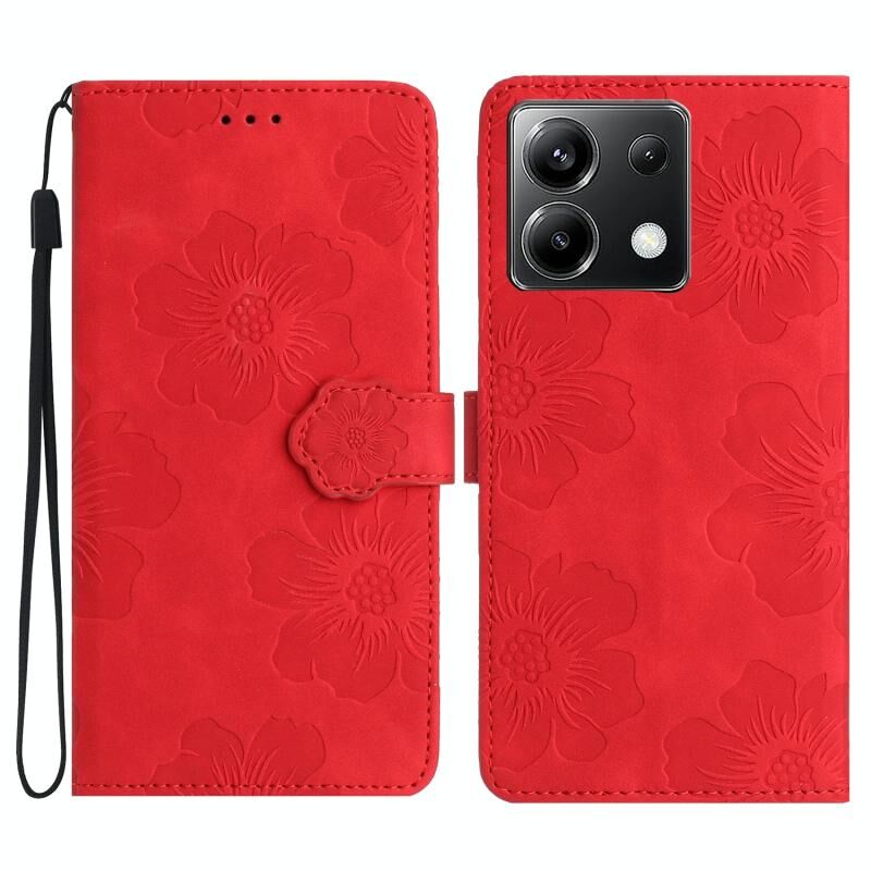 Για Xiaomi Poco X6 λουλούδι ανάγλυφο μοτίβο δερμάτινη θήκη τηλεφώνου (κόκκινο)