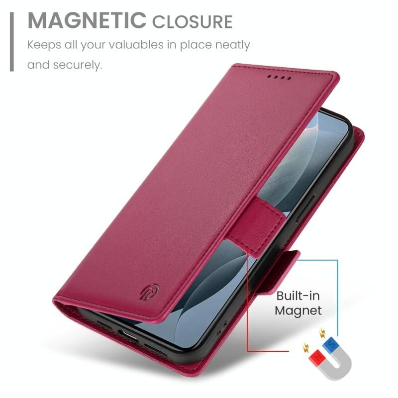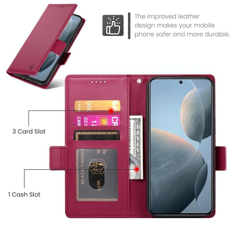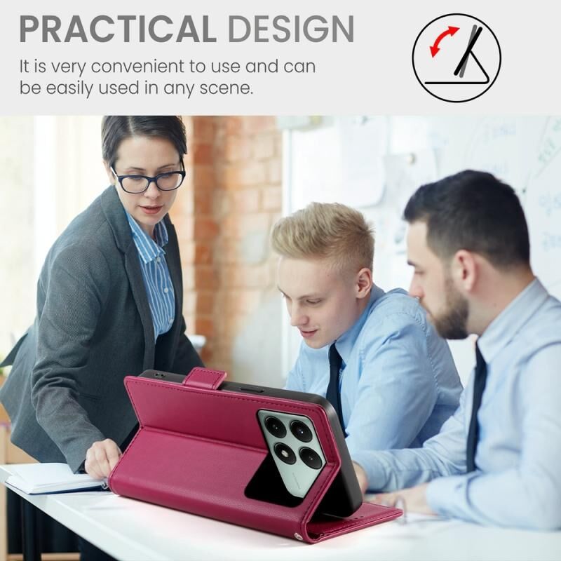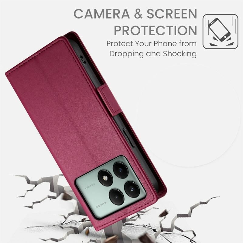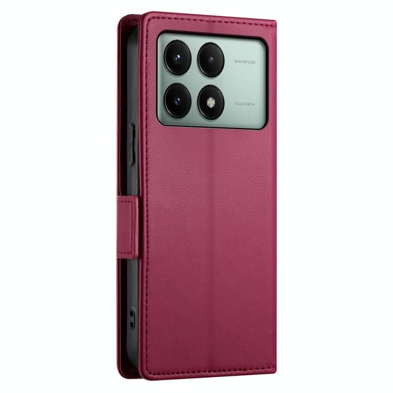 Για Xiaomi Poco X6 Pro 5G Παγκόσμια πλευρά πόρπη μαγνητική παγωμένη δερμάτινη θήκη τηλεφώνου (κόκκινο κρασί)
