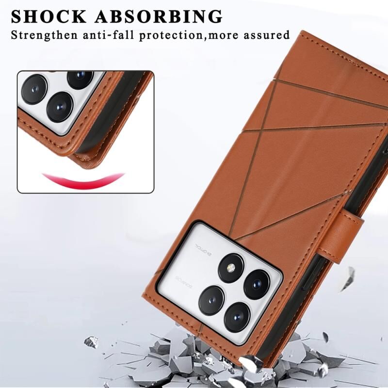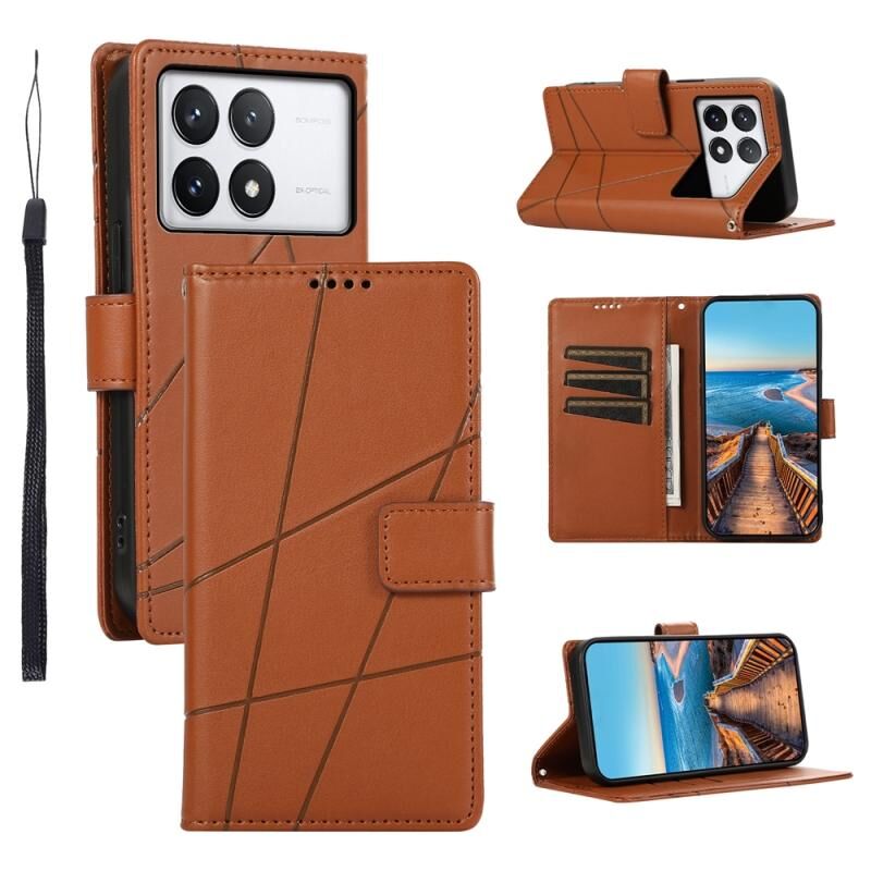 For Xiaomi Poco X6 Pro 5G PU Genuine Leather Texture Embossed Line Phone Case(Brown)