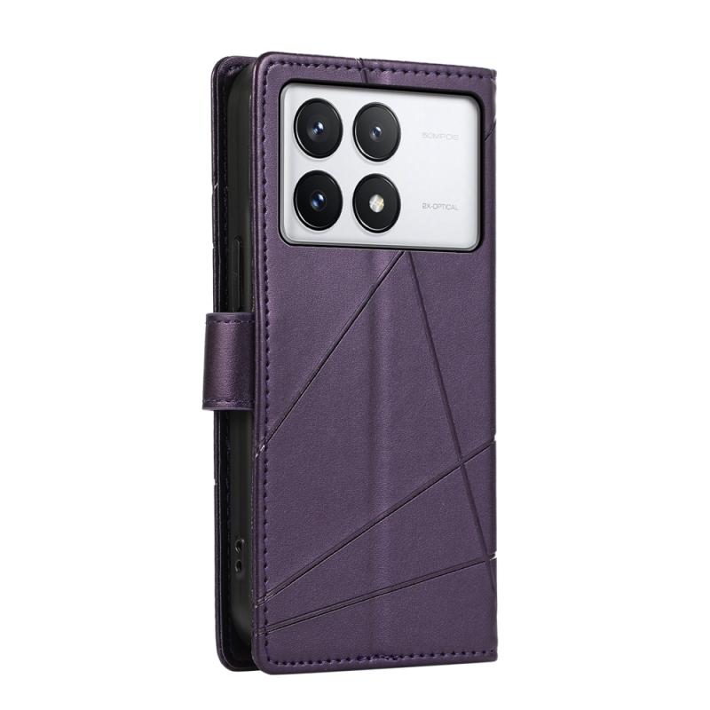 For Xiaomi Poco X6 Pro 5G PU Genuine Leather Texture Embossed Line Phone Case(Purple)