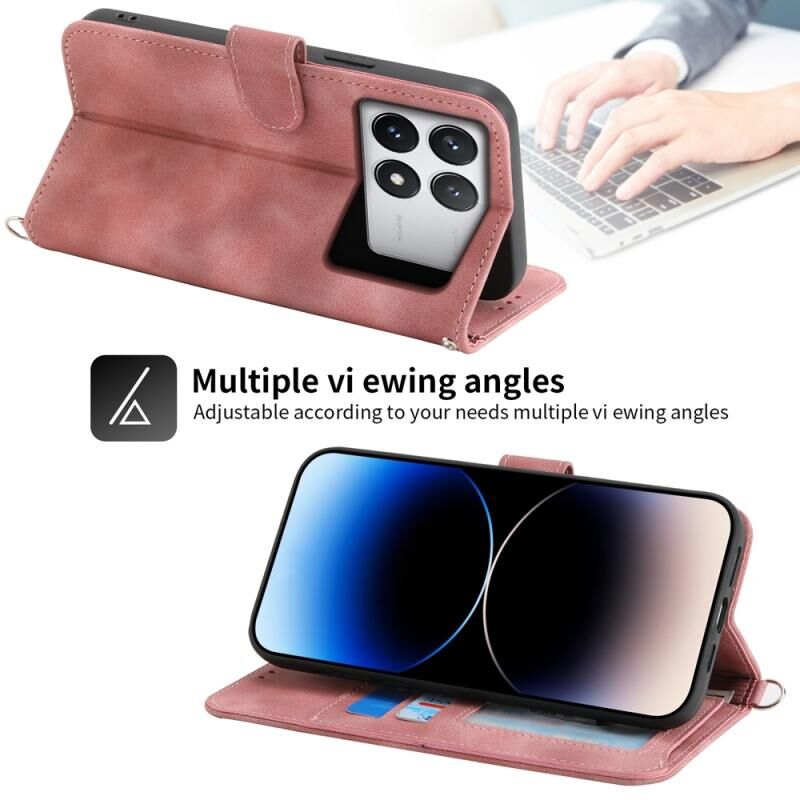 Για Xiaomi Poco X6 Pro 5G Skin-feel λουλούδια ανάγλυφο πορτοφόλι δερμάτινη θήκη τηλεφώνου (ροζ)